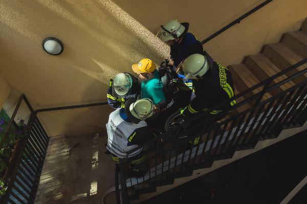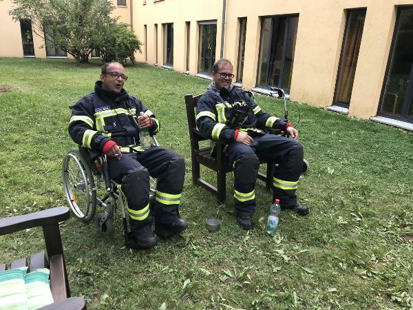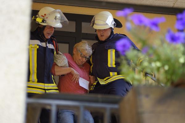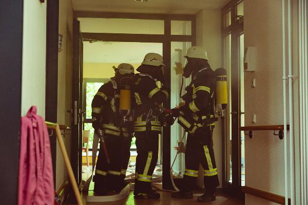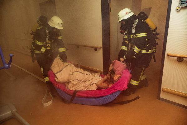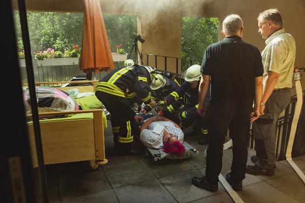 Übungen wie diese helfen daher Einsatzkräften, Pflegepersonal und Heimbewohnern, sich auf solche Lagen vorzubereiten. Insgesamt waren 30 Einsatzkräfte der Feuerwehr und 8 Helfer des DRK eingesetzt. In einer kurzen Nachbesprechung im Anschluss an die Übungen lobten die Übungsleiter ganz besonders die hervorragende Zusammenarbeit mit dem Pflegepersonal, das unvorbereitet Teilnehmer der Übung wurde.