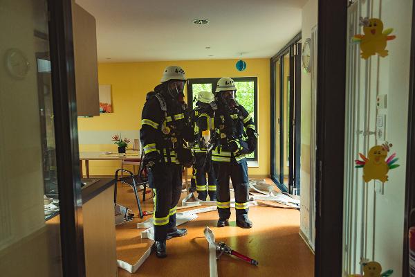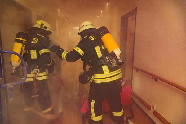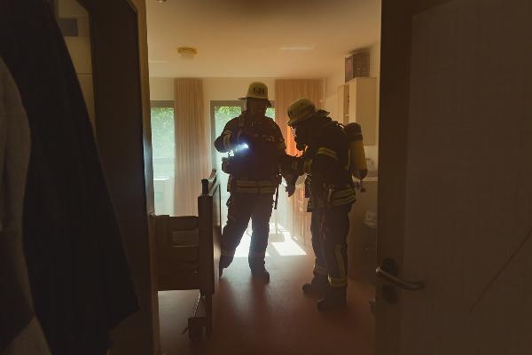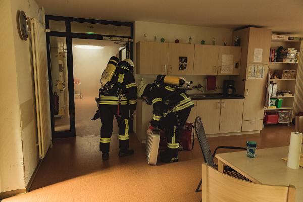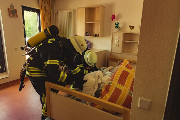 Ein Brandabschnitt in dem weitläufigen Gebäudekomplex musste evakuiert werden. Das bedeutete für die Retter, 19 Personen, von denen 5 Verletzungen wie Brüche und Platzwunden hatten, mussten in Sicherheit gebracht werden. Damit nicht genug, musste auch 3 bettlägerige Bewohnen gerettet und eine vermisste Person im Brandzimmer gesucht werden. Dafür gingen mehrere Trupps, ausgerüstet mit Atemschutzgeräten, in das Gebäude vor.
