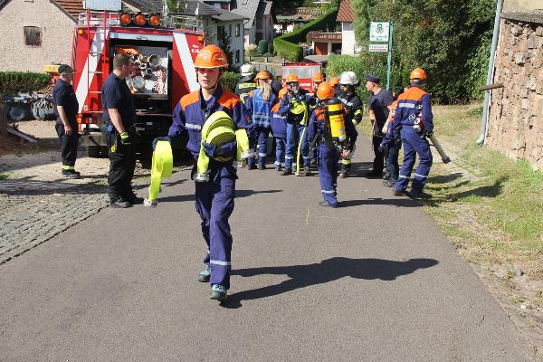 Alle Beteiligten ernteten für ihren Einsatz vom Stellvertretenden Wehrführer Wolfgang Braun und der Bürgermeisterin großes Lob. Danach gab es für alle eine verdiente Stärkung im Macherbacher Gerätehaus.