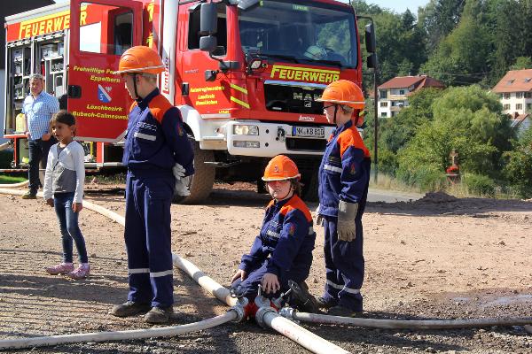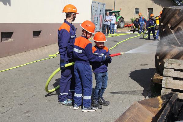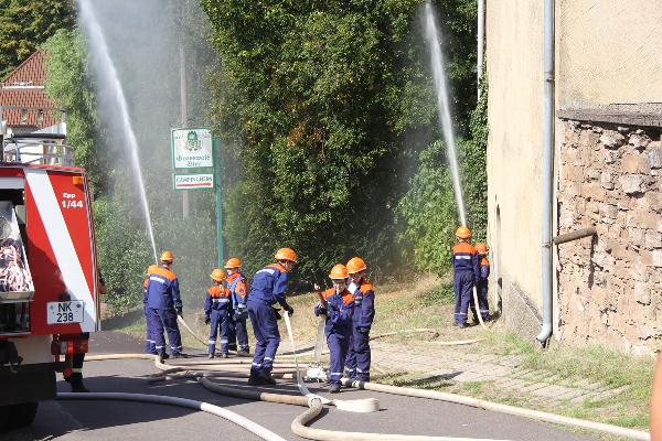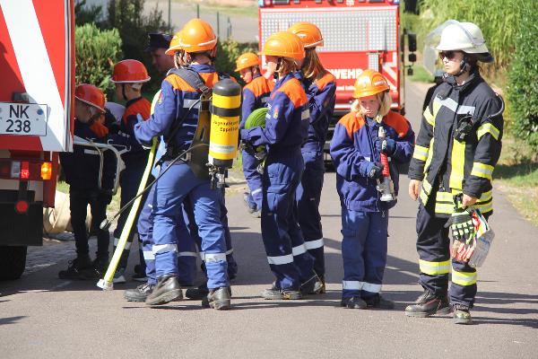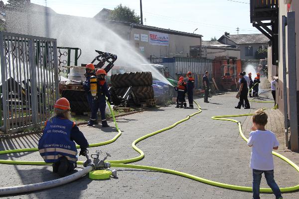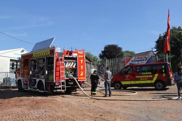 "Schweißarbeiten in einem Betrieb im Ortsteil Macherbach haben einen Brand ausgelöst, der sich schnell auszubreiten droht" lautete die Meldung bei der Alarmierung. Großalarm für die Jugendfeuerwehr! Nacheinander rückten sie mit den großen Löschfahrzeugen zum Einsatzort an. Löschwasser musste aus Hydranten entnommen werden und die Schläuche an die Pumpen der Löschfahrzeuge angeschlossen werden, bevor der Löschangriff mit mehreren Rohren beginnen konnte. Unterstützt wurden die Jugendlichen dabei von ihren Betreuern und Kameraden der Einsatzabteilung.