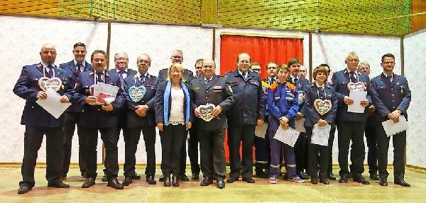 Für 40 Jahre Mitgliedschaft wurden die beiden Oberlöschmeister Armin Schmitt und Guido Schmitt geehrt. 50 Jahre Mitglied in der Wiesbacher Feuerwehr sind Brandmeister Alois Brill und Oberlöschmeister Peter Kiefer.