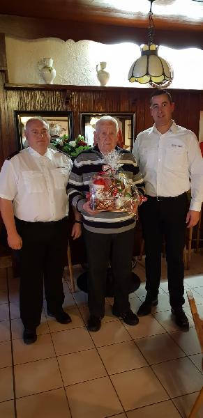 Die Aktivwehr des Löscbbezirk Dirmingen schickte eine offizielle Abordnung um Fred Bock zu gratulieren und ein Präsent, verbunden mit den besten Wünschen aller Kameraden, zu überreichen. Diese Aufgabe wurde von Löschbezirksführer Markus Lambert und seinem Stellvertreter Heino Molter übernommen.