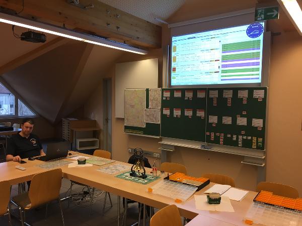 Die Übung war sehr anspruchsvoll. So mussten in 3 Stunden insgesamt 44 Einsätze in der Einsatzsoftware angelegt, priorisiert, lokalisiert, disponiert bzw. den Einsatzfahrzeugen zugewiesen und über Funk übermittelt werden. Ebenso erfolgte die Dokumentation der Einsätze, der Lagemeldungen, der Rückmeldungen von den Einsatzstellen, der Nachforderungen von Einsatzmitteln und -kräften bis zum Abschluss der jeweiligen Einsätze. Eingebaut war auch ein Brandalarm, der vorrangig abzuarbeiten war, sowie Notrufe, die direkt in der kommunalen Befehlsstelle in Wiesbach aufliefen und auch eingearbeitet werden mussten.
