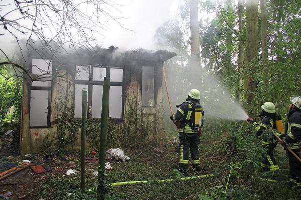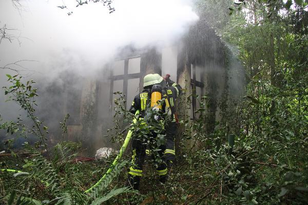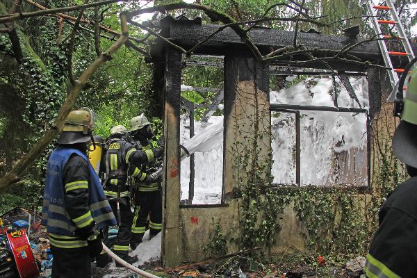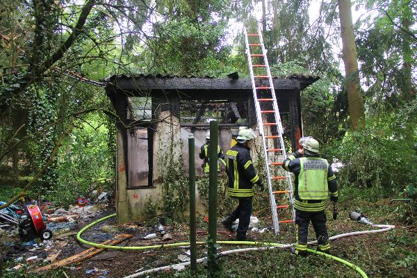 Die Brandursache ist unklar, Brandstiftung kann nicht ausgeschlossen werden. Die Feuerwehr konnte das Gartenhaus nicht mehr retten. Ein Übergreifen auf die angrenzenden Bäume konnte aber durch den schnellen Einsatz verhindert werden.