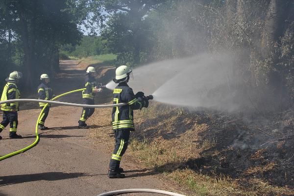Mit zwei C-Rohren konnte das Feuer schnell gelöscht werden. Besonders im Bereich einer Baumwurzel musste dabei auf versteckte Glutnester geachtet werden. Ein weiteres Ausbreiten des Brandes konnte verhindert werden. Die Brandursache ist unbekannt.