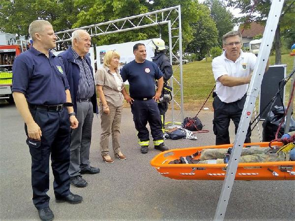 Die Feierlichkeiten starteten am Samstagnachmittag mit dem Jubiläumsevent „Unser Dorf löscht“. Dabei traten mehrere Gruppen in einem unterhaltsamen und sportlichen Wettstreit gegeneinander an. Neben vier Herrenmannschaften starteten auch eine Frauenmannschaft und zwei Mannschaften der Jugendfeuerwehr. Die Spiele, die im weitesten Sinne mit der Feuerwehrarbeit und somit etwas mit Wasser zu tun hatten, brachten für allen Teilnehmern eine Menge Spaß und eine willkommene Abkühlung.