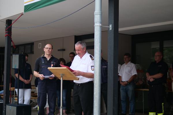 Der ehemalige Löschbezirksführer OBM Markus Lambert wurde für 5 Jahre im Dienst als Löschbezirksführer geehrt. Aus beruflichen und zeitlichen Gründen konnte er das Amt ab 2019 nicht weiter führen und machte so den Weg für eine neue Löschbezirksführung frei.