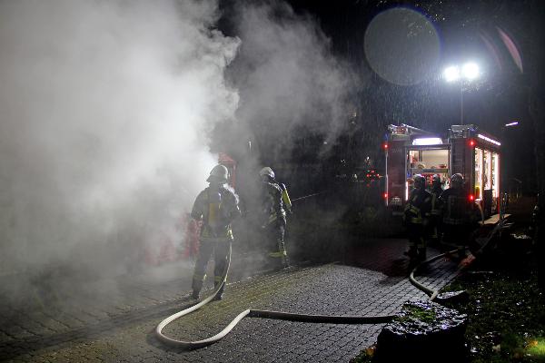 Die brennenden Kleider wurden mit einer Dungharke auseinander gezogen und abgelöscht. Die Einsatzstelle wurde dabei mehrfach mit einer Wärmebildkamera auf versteckte Gkutnester überprüft.
