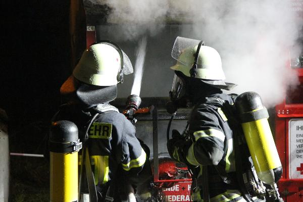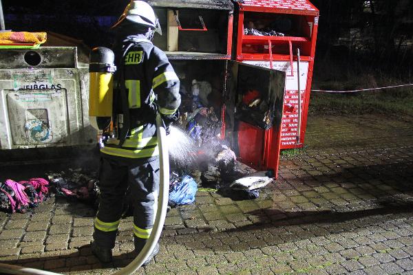 Bei Ankunft der Einsatzkräfte brannte der Container in voller Ausdehnung. Ein Trupp unter Atemschutz kühlte mit einem C-Rohr den Container. Mit einer Säbelsäge wurde der Verschluss des Containers geöffnet, um Zugang zum Inhalt zu bekommen.