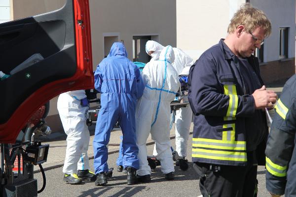 Mit der Drehleiter der Feuerwehr Illingen und unterstützt von Einsatzkräften aus dem Löschbezirk Wiesbach wurde der Mann durch ein Fenster ins Freie gebracht und mit einem Rettungswagen zur weiteren Behandlung in ein Krankenhaus transportiert. Da eine Infektion mit dem Coronavirus möglich war, mussten sich die Einsatzkräfte mit Patientenkontakt mit spezieller Schutzkleidung und Atemschutzmasken ausrüsten.