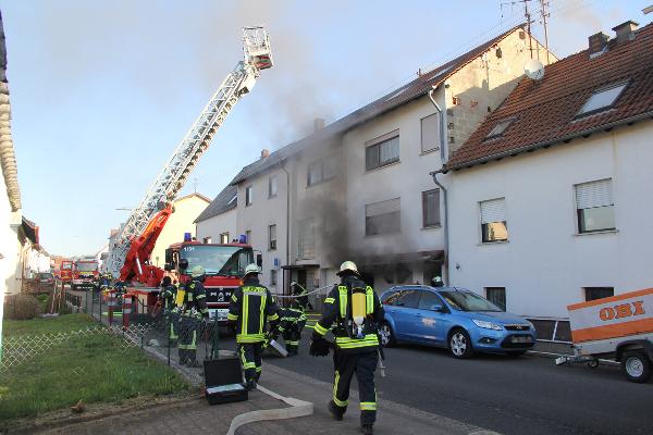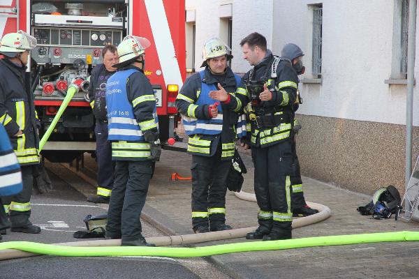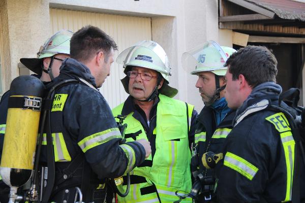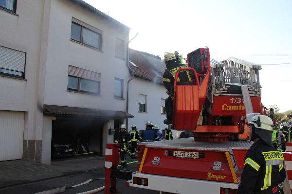 Beim Eintreffen der ersten Einsatzkräfte drang dichter Rauch aus der Garage im Erdgeschoss des Anwesens. Alle Bewohner hatten sich bereits in Sicherheit bringen können. Unter Atemschutz drang ein Trupp in die völlig verqualmte Garage vor und konnte den Brandherd im hinteren Bereich der auch als Lager genutzten Räumlichkeiten lokalisieren.