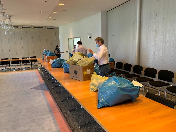 In Eppelborn sind am Wochenende rund 85.000 dieser Masken angekommen, die von Mitarbeitern der Gemeindeverwaltung anhand der Daten des Einwohnermeldeamtes auf die einzelnen Straßen aufgeteilt wurden.