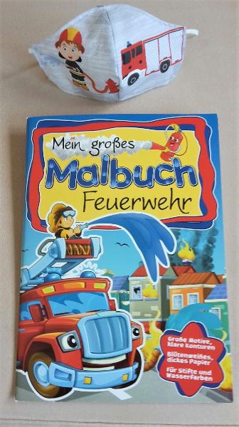 Da mittlerweile die Schulen und Kitas wieder geöffnet sind, gab es zum Malbuch einen ganz besonderen Mund-Nasen-Schutz. Mit dem Feuerwehrlook sind die Kinder sicherlich der Hingucker und sorgen damit umso lieber für ihre und die Gesundheit ihrer Mitschülerinnen und Mitschüler. „Wir hoffen, dass die Kinder uns alle über die Krise hinaus die Treue halten und schon bald wieder schöne und aufregende Feuerwehrmomente bei uns erleben können“, sagt Steil.
