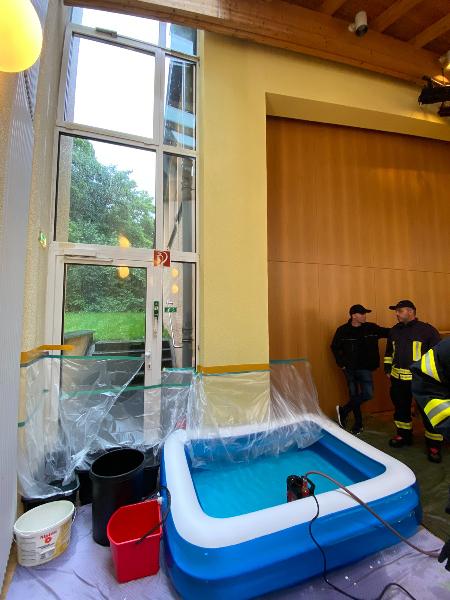 Als diese nicht mehr ausreichte und der Pool überlief, rief der Ortsvorsteher von Bubach-Calmesweiler die Feuerwehr zu Hilfe. Mit einer Tauchpumpe pumpten die Kameraden aus dem Löschbezirk Bubach-Calmesweiler das Wasser nach draußen.