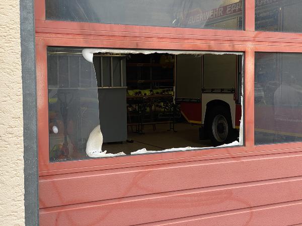 Die Einbrecher brannten eine Scheibe aus einem der Hallentore und verschafften sich so Zugang zu den Einsatzfahrzeugen. Gezielt öffneten sie dann den Geräteraum am Rüstwagen und entnahmen die Rettungsgeräte.