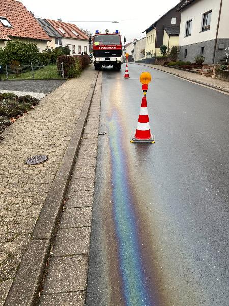 Der Löschbezirk Wiesbach wurde am Morgen gegen 08:37 Uhr in die Grubenstraße gerufen. Dort zog sich eine gut sichtbare Öl- oder Dieselspur bis zur Marienstraße. Die Einsatzkräfte sicherten die Einsatzstelle ab und informierten den Baubetriebshof der Gemeinde, der die weitere Beseitigung übernahm.