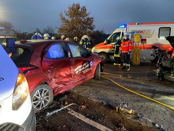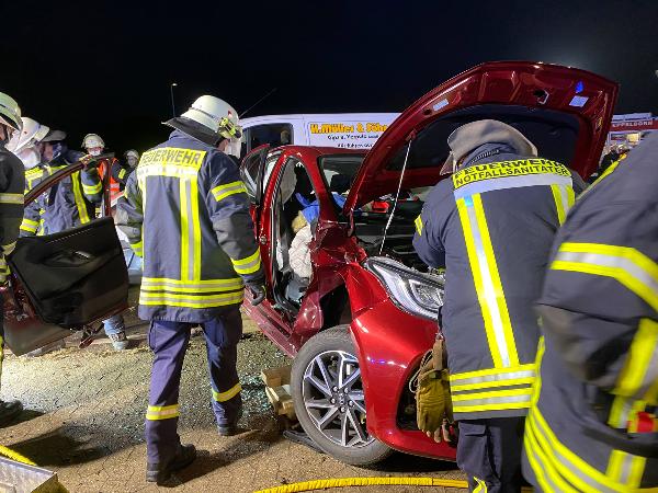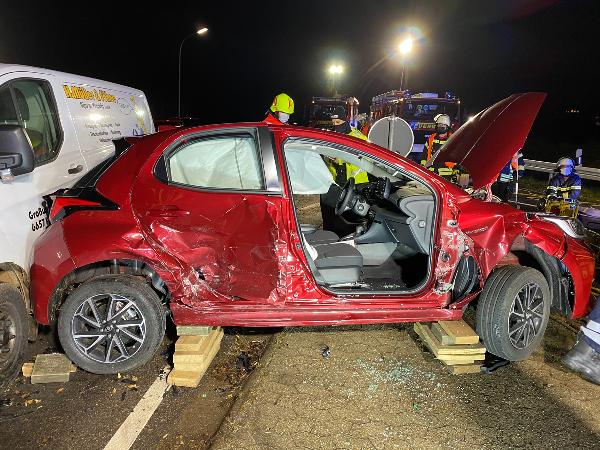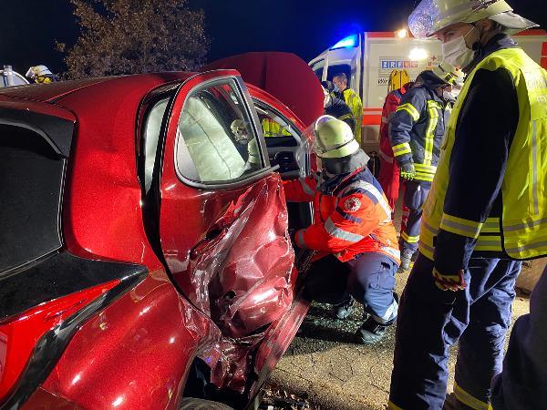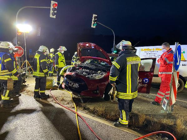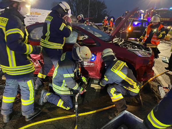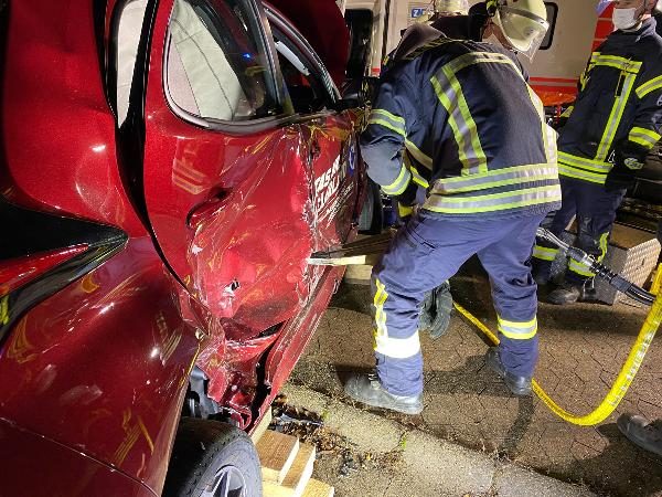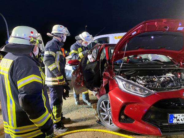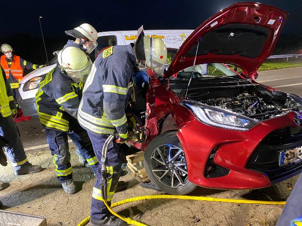 Die Einsatzkräfte klemmten an dem Audi die Fahrzeugbatterie ab und stellte den Brandschutz sicher. Bei dem Toyota handelte es sich um ein Hybridfahrzeug, dessen Akku durch den Unfall nicht zugänglich war. Wegen der einbrechenden Dunkelheit wurde die Einsatzstelle ausgeleuchtet. Mit hydraulischen Rettungsgeräten wurde dann die Beifahrertür entfernt, um die Patientin möglichst schonend aus dem Fahrzeug zu befreien. Sie wurde an den Rettungsdienst übergeben.