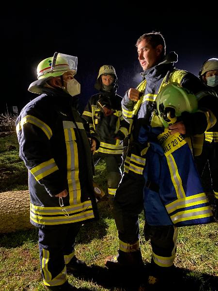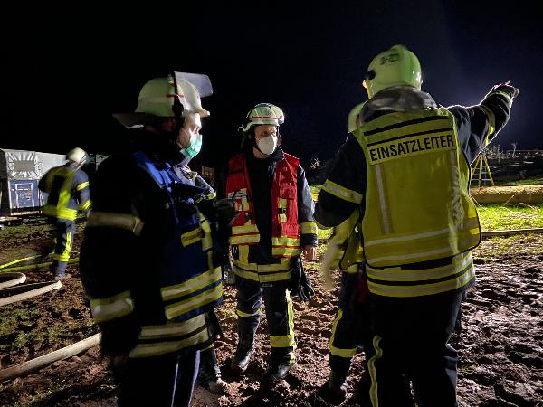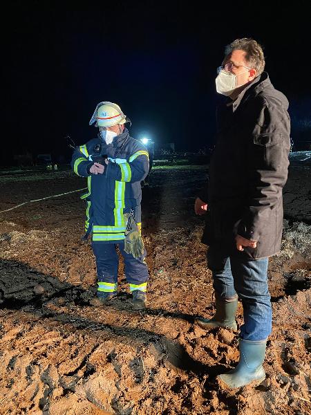Während des laufenden Einsatzes machte sich neben dem Kreisbrandinspekteur des Landkreises Neunkirchen Michael Sieslack auch der Bürgermeister der Gemeinde Eppelborn, Dr. Andreas Feld ein Bild vor Ort. Gemeinsam mit Wehrführer Andreas Groß informierte sich der Bürgermeister bei den Hofbesitzern über das Schadenausmaß. Hierbei wurde erwähnt, dass es sich um das gesamte Strohlager des Hofes für die zahlreichen Tiere handelte, welches nun zum Raub der Flammen wurde.