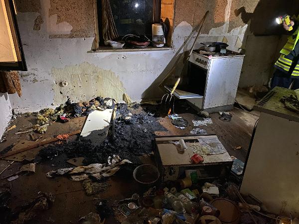 Die kurz nach dem Notruf eintreffenden Einsatzkräfte konnten einen Flammenschein hinter einem Fenster im Obergeschoss des Gebäudes bestätigen. Nachdem die Eingangstür gewaltsam geöffnet worden war, drang ein Trupp unter Atemschutz in das Gebäude vor und konnte den Brandherd schnell lokalisieren. Mit einem C-Rohr wurden brennende Kleiderreste abgelöscht und das Gebäude im Anschluss mit einem Überdrucklüfter belüftet.