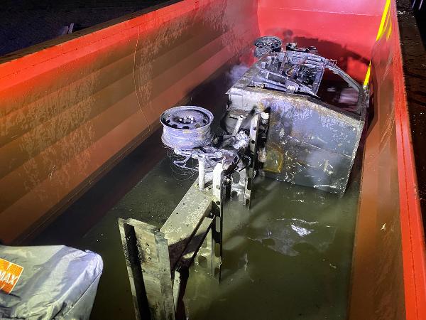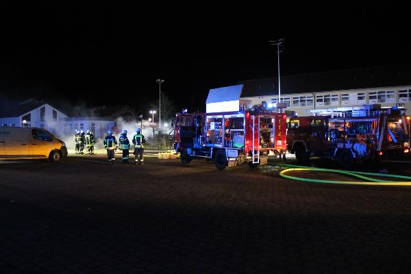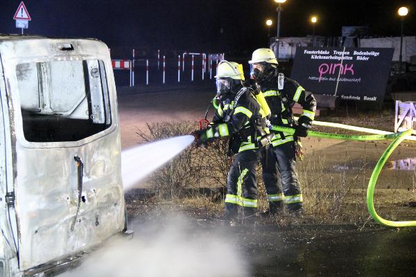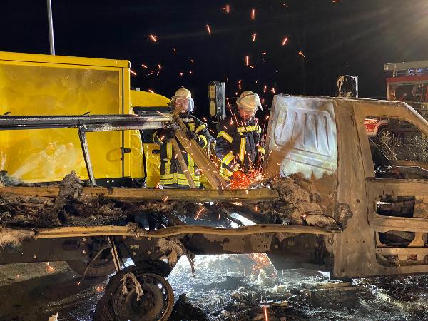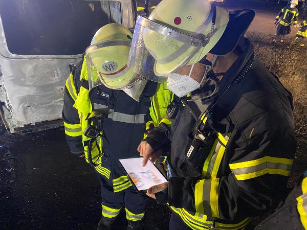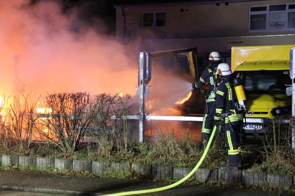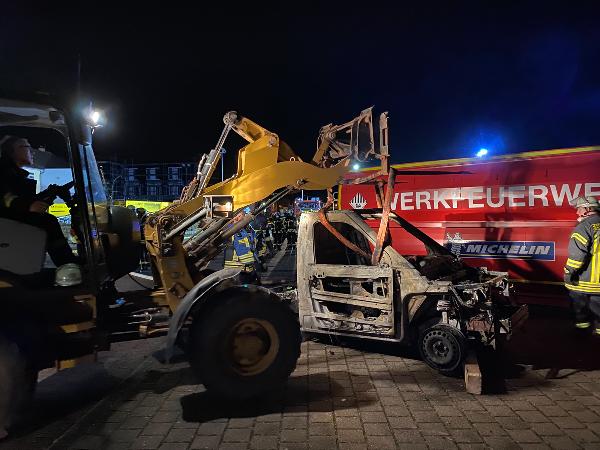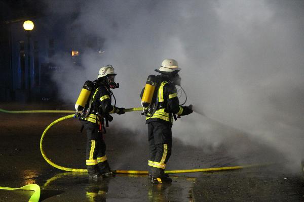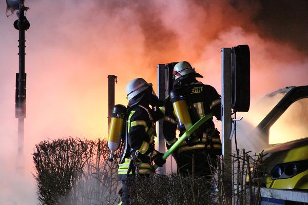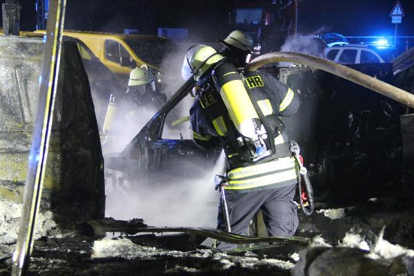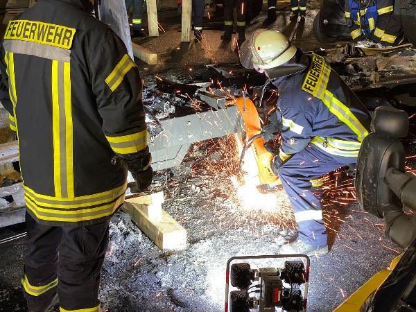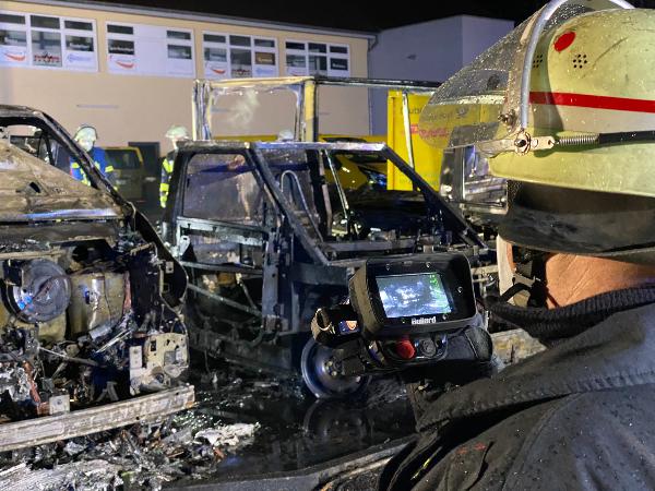 Mit mehreren Rohren und unter Atemschutzeinsatz konnte der Brand der sogenannten StreetScooter schnell gelöscht werden. Doch mit den Löscharbeiten an den E-Fahrzeugen war die Arbeit der Feuerwehr noch lange nicht zu Ende. Denn durch die große Hitze des Feuers war in den Akkus eine Reaktion in Gang gekommen, die weiter für eine große Hitzeentwicklung sorgen würde.