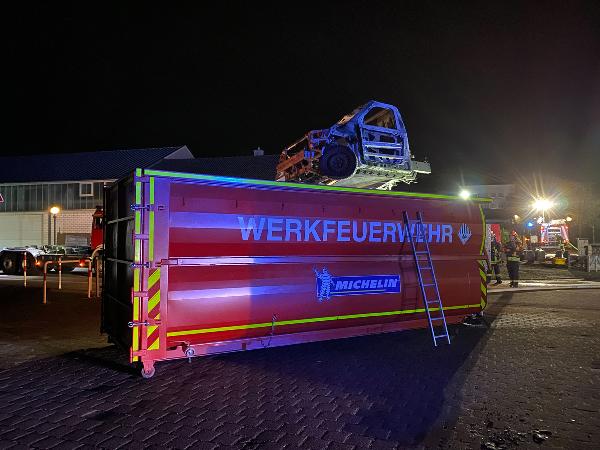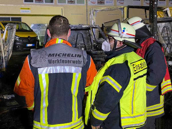 | Eingesetzte Fahrzeuge: | Werkfeuerwehr Michelin Homburg (), Rettungswagen (), Polizei (), Baubetriebshof (), KdoW Wehrführer (03), MTW (1-18), TLF 16/25 (1-23), LF 16 TS (1-44), RW (1-52), GW L2 (1-63), MTW (2-18), LF KatS (2-44), HLF 8/12 (2-45) |