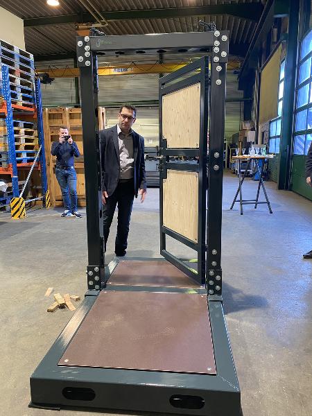 Im Anschluss stellte Frank Kartes die Übungstür ausführlich den Vertretern der Feuerwehr vor. Die Tür wird im Löschbezirk Humes Hierscheid stationiert und in den nächsten Wochen in den Löschbezirken vorgestellt werden.
