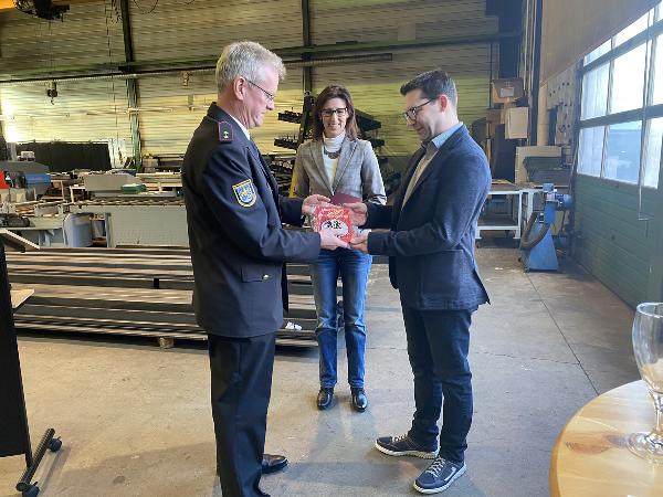 Bürgermeister Dr. Andreas Feld war stolz, als er von der Partnerschaft zwischen der Feuerwehr der Gemeinde und der Firma GERMA berichtete. So gab es auch in der Vergangenheit nicht nur materielle und finanzielle Unterstützung für die Feuerwehr. Er hob auch hervor, dass mehrere Mitarbeiter des Unternehmens aktive Feuerwehrmitglieder seien und für Einsätze ganz unbürokratisch freigestellt würden. "Es ist das erste Mal, dass wir so eine Auszeichnung in der Gemeinde verleihen, und deshalb ist es auch für die Feuerwehr etwas ganz besonderes", so der Bürgermeister.