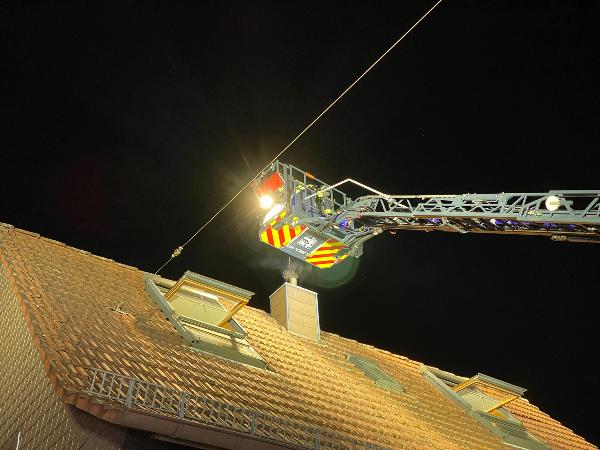 Obwohl der Schornstein danach freigängig war, kühlte er im Bereich des Obergeschosses nicht ab. Deshalb wurde nach Rücksprache mit dem ebenfalls vor Ort eingetroffenen Schornsteinfegermeister ein Teil des Schornsteins mit einem Stemmwerkzeug geöffnet. Dabei zeigte sich, dass der eigentliche Kaminbrand im inneren Edelstahlrohr, das im Zuge einer Sanierung eingebracht worden war, beseitigt war. Doch hatten sich durch die hohen Temperaturen Glanzrußreste im ehemaligen Schornstein ebenfalls entzündet. Diese wurden entfernt und die Einsatzstelle an den Schornsteinfegermeister übergeben.