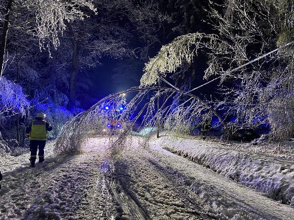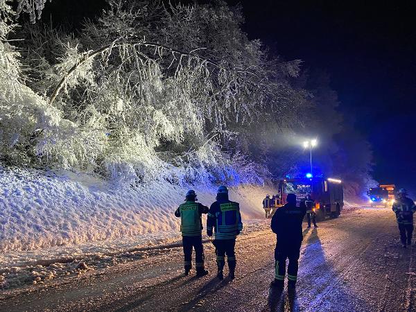 Auch auf der Autobahn A1 drohte in der Nacht ein schneebedeckter Baum auf die Fahrbahn zwischen den Anschlussstellen Eppelborn und Illingen zu stürzen. Die Löschbezirke Eppelborn, Bubach-Calmesweiler und Dirmingen mussten hier zuerst eine Vollsperrung der Richtungsfahrbahn Saarbrücken einrichten, bevor der Baum mit einer Kettensäge gefällt werden konnte. Die Beseitigung übernahm der Landesbetrieb für Straßenbau.