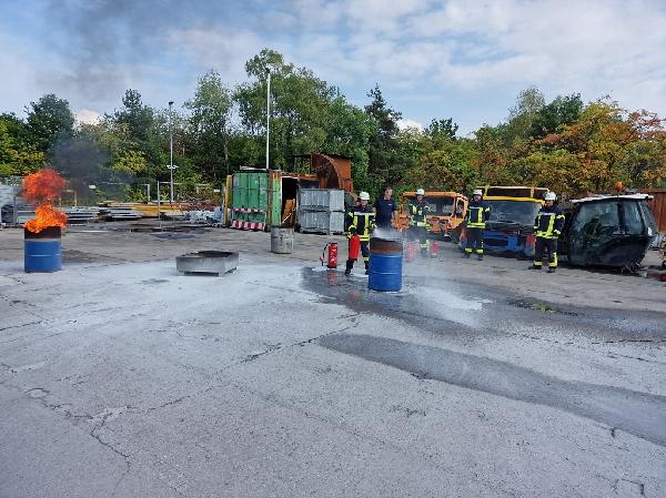 Nach erfolgreichem Übungsabschluss wurde das vorhandene Material an den Fahrzeugen ausprobiert und das Thema Glasmanagement vertieft. Parallel dazu, konnten sich die neuen Mitglieder den richtigen Umgang mit Feuerlöschern üben und testen wo deren Grenzen sind.