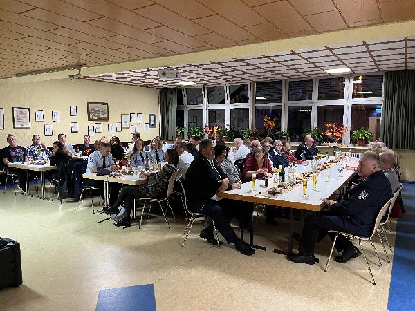 Löschbezirksführer René Finkler konnte zahlreiche Feuerwehrmitglieder aus der Alters- und Ehrenabteilung, der aktiven Wehr und der Jugendfeuerwehr - sowie deren Angehörige – im Bürgerhaus Habach begrüßen. Zu den insgesamt über 60 anwesenden Personen zählten auch der Ortsvorsteher Peter Dörr mit seiner Frau Monika, der stellvertretende Wehrführer der Freiwilligen Feuerwehr Eppelborn - Thorsten Fuchs, Holger Keller als Vertreter des Kreisfeuerwehrverbandes sowie die Vorstandsmitglieder des Fördervereins.