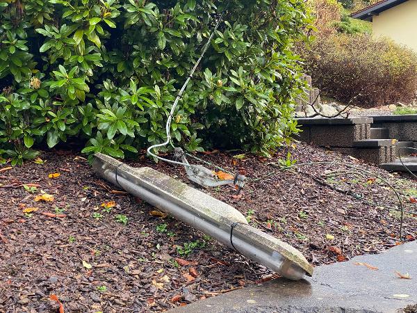 Ein Baum, der auf ein Wohnhaus zu stürzen drohte, konnte zusammen mit den Kameraden der Feuerwehr Illingen, die mit der Drehleiter vor Ort waren, beseitigt werden.