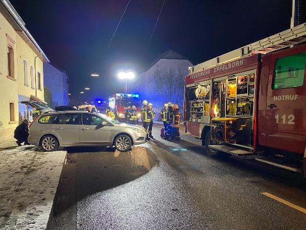 Eppelborn. Die Löschbezirke Eppelborn und Bubach-Calmesweiler sowie Rettungsdienst und Notarzt wurden am Abend des 14. Dezember 2022 gegen 19:05 Uhr zu einem Verkehrsunfall in die Kossmannstraße gerufen. Der Fahrer eines Pkw befuhr die Straße in Fahrtrichtung Habach und kollidierte mit einem am rechten Fahrbahnrand abgestellten Fahrzeug.