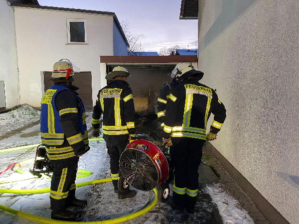 Im Nachgang wurde die Einsatzstelle mittels Wärmebildkamera auf Glutnester überprüft. Dafür musste die Garage teilweise entleert und Nachlöscharbeiten durchgeführt werden.