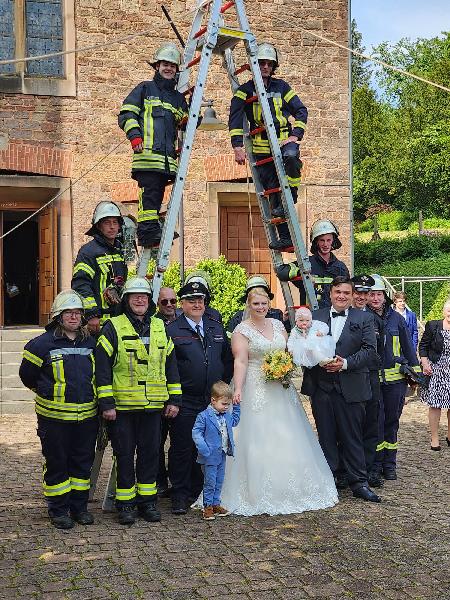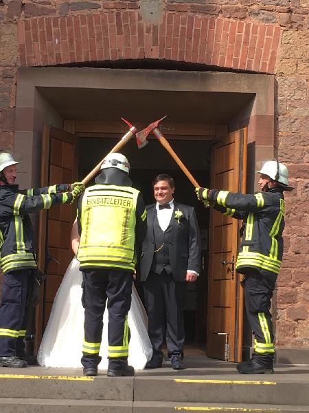 Wir danken unseren Wehrleuten für das kameradschaftliche Engagement an der Hochzeit von Fabian und Michelle. Ein besonderer Dank geht an die Löschbezirksangehörigen Christa Köhl, Jasmin Fuchs und Tanja Zöllner, die für die Bewirtung am Sektempfang sorgten.