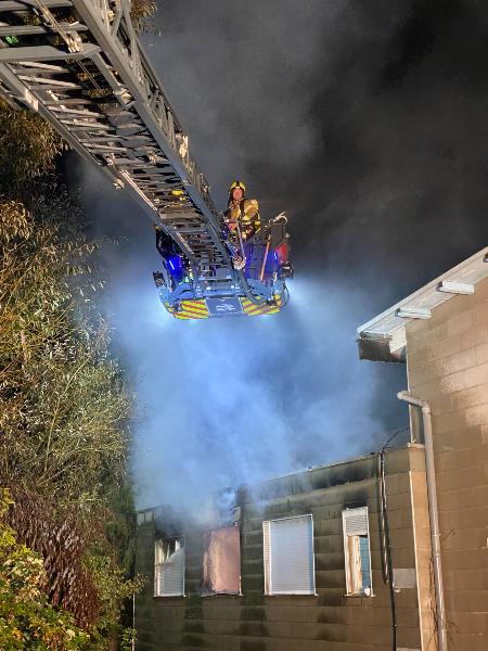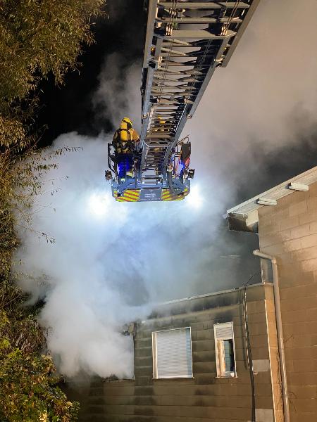 Beim Eintreffen der Einsatzkräfte schlugen die Flammen bereits aus einem Fenster der Wohnung. Die Feuerwehr begann sofort mit der Brandbekämpfung von aussen sowie unter Atemschutz im Innenangriff. Die Flammen hatten bereits auf die Dachkonstruktion übergegriffen, so dass die Deckenverkleidung entfernt werden musste. Bis zum Nachmittag dauerten die Löscharbeiten, bis die Einsatzstelle an die Polizei übergeben werden konnte.