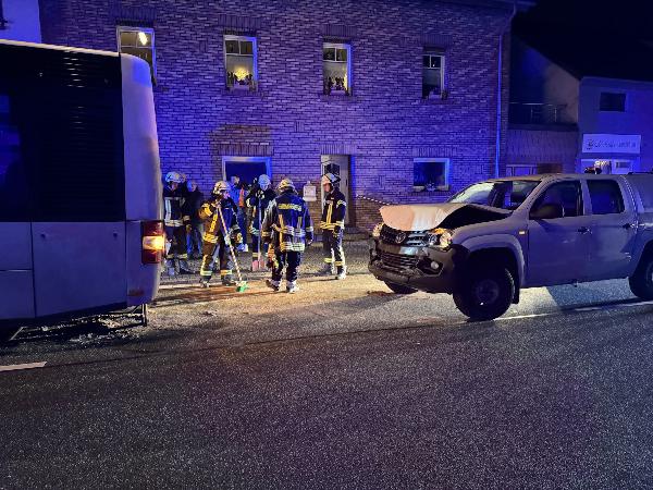 Die Feuerwehr nahm die auslaufenden Betriebsstoffe mit Bindemittel auf und übergab die Einsatzstelle an die Polizei. Die weiteren Maßnahmen übernahm die Polizei. Der Einsatz war für die Feuerwehr nach rund einer Stunde beendet.