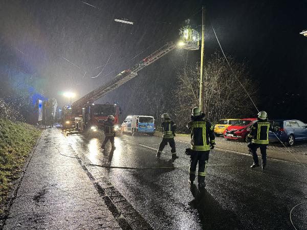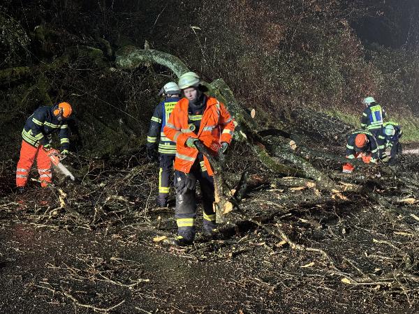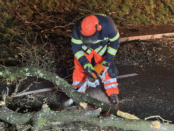 Bevor mit den Aufräumungsarbeiten begonnen werden konnte, musste daher durch den Energieversorger die Stromversorgung der betroffenen Kabel unterbrochen werden. Erst dann konnte der Baum mit der Motorkettensäge zerkleinert und die Fahrbahn geräumt werden.