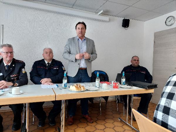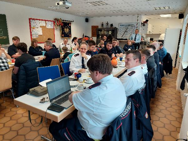 Nach einer Gedenkminute für die verstorbenen Kameraden verlaß der Schriftführer Fabian Schorr das Sitzungsprotokoll der letzten Jahreshauptversammlung. Es folgten die Grußworte der Gäste, die Dank und Anerkennung aussprachen. Blicke in das zurückliegende Jahr und die Ausschau auf das kommende Jahr waren ebenso Themen, wie die Investitionen die getätigt werden müssen, damit die Feuerwehren gut aufgestellt werden können.