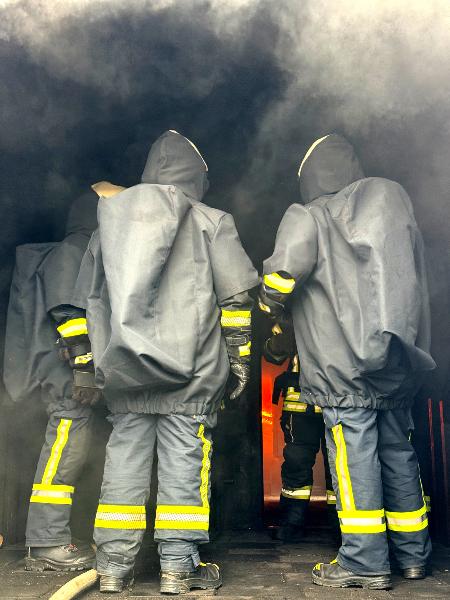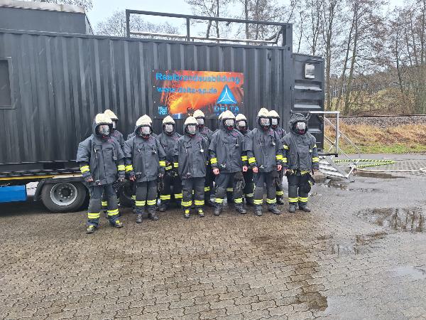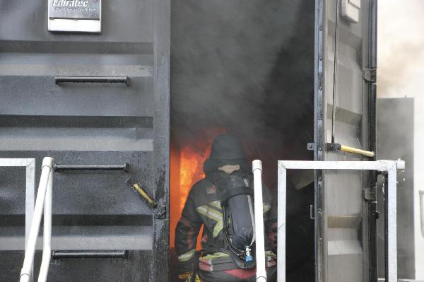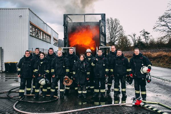 Zudem wurde der Brandcontainer so aufgeheizt, dass man bewusst eine Rauchgasdurchzündung herbeiführte um den Teilnehmern die Schutzwirkung der Feuerwehrbekleidung zu demonstrieren. Die Durchzündung führte zu Temperaturen von bis zu 600 Grad Celsius unter der Decke in dem Raum wo sich die Teilnehmer unter Atemschutz befanden.