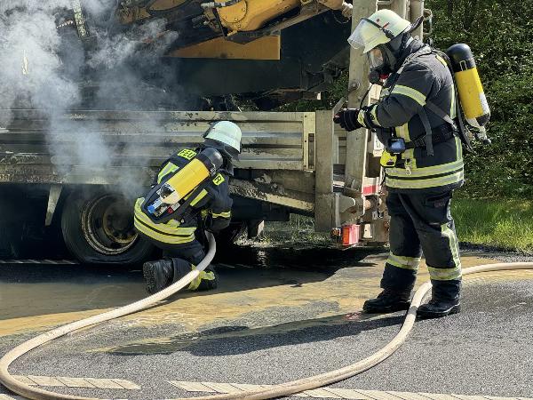 Unter Atemschutzeinsatz konnte das Feuer schnell gelöscht mit einem C-Rohr werden, Am Anhänger und der darauf verladenen Baumaschine, einer Spülbohrmaschine zur Verlegung von Glasfaserkabeln, entstand geringer Sachschaden. Auslaufender Kühlschlamm sorgte allerdings für eine Verschmutzung der Fahrbahn, die vor der Freigabe erst beseitigt werden musste. Deshalb mussten die Auf- und Abfahrt Eppelborn in Fahrtrichtung Trier bis gegen 17:30 gesperrt werden.