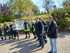 Der Bürgermeister der Gemeinde Eppelborn Dr. Andreas Feld, der Ortsvorsteher des Ortsteiles Dirmingen Frank Klein und der stellvertretende Wehrführer der Feuerwehr Thorsten Fuchs beobachteten aus Sicht des kommunalen Krisenmanagements die Großübung.
