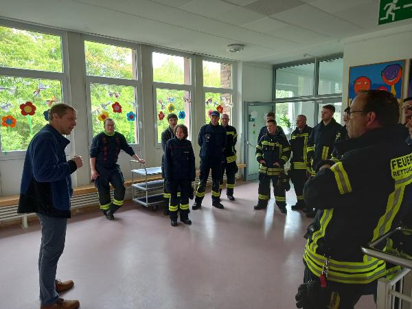Der Rektor der Rothenbergschule, Herr Engel, ermöglichte für alle Rettungskräfte im Nachgang eine Objektbegehung des Schulgebäudes und gab umfangreiche Informationen.