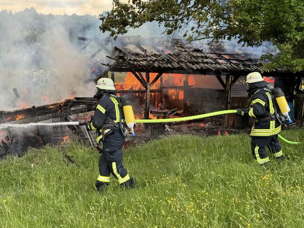 Bei der Ankunft stand die Stallung in Vollbrand, Teile der Dachkonstruktion waren bereits eingestürzt. Mit 2 C-Rohren und unter Atemschutzeinsatz wurde mit der Brandbekämpfung begonnen. Die zwischenzeitlich eintreffenden Eigentümer berichteten den Einsatzkräften, dass sich in der Stallung noch vier Ziegen aufgehalten haben.