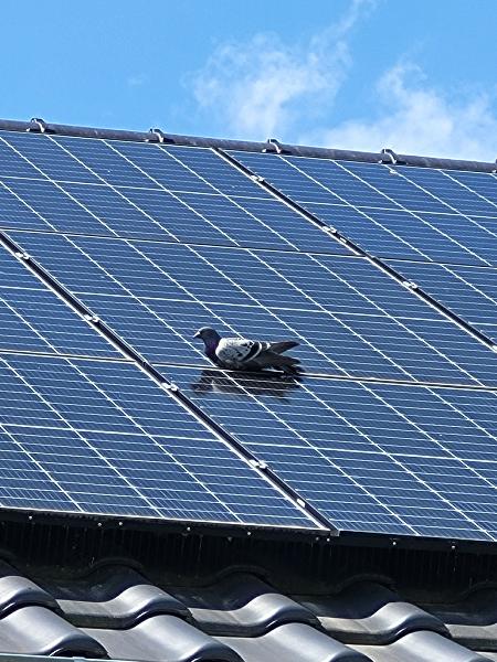 Eine Taube hatte sich im Taubenschutzgitter einer Photovoltaikanlage verfangen und konnte sich aus eigener Kraft nicht mehr befreien.