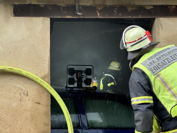 Die Löschbezirke Eppelborn und Bubach-Calmesweiler wurden gegen 15:26 Uhr von der integrierten Leitstelle mit dem Einsatzstichwort "Brand 3" alarmiert. Beim Eintreffen der Einsatzkräfte drang bereits dichter schwarzer Brandrauch aus der rund 100 Quadratmeter großen, eingeschossigen Halle, die als Werkstatt und Lager genutzt wurde.