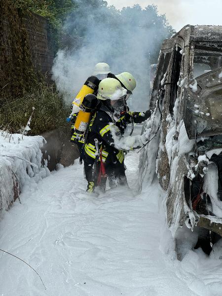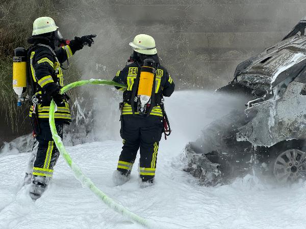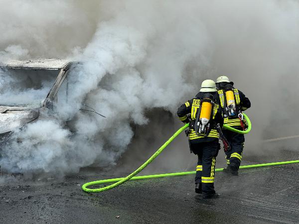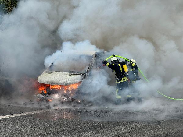 Als er das Fahrzeug auf dem Standstreifen zum Stillstand brachte, schlugen bereits Flammen aus dem Motorraum. Die Mitfahrer konnten sich selbst und ihr mitgeführtes Gepäck in Sicherheit bringen. Als eigene Löschversuche mit einem Feuerlöcher erfolglos blieben, alarmierten sie die Feuerwehr.