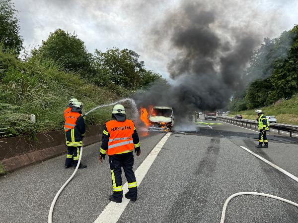Eppelborn. Ein mit 8 Personen besetzter Kleinbus ist am 17. Juni 2024 gegen Mittag auf der Autobahn A1 in Flammen aufgegangen. Der Fahrer befuhr die Autobahn gerade zwischen den Anschlussstellen Illingen und Eppelborn in Fahrtrichtung Trier, als das Fahrzeug nicht mehr auf Gas und Bremse reagierte und er starken Brandgeruch wahrnahm.