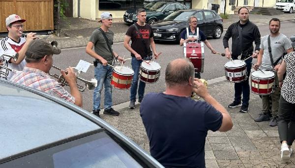 Zu seiner Geburtstagsfeier im Gasthaus Schmiede in Bubach konnte Ihm der Fanfarenzug unter der Leitung von Bernd Erberich mit einem Ständchen und einem Präsent gratulieren.