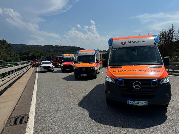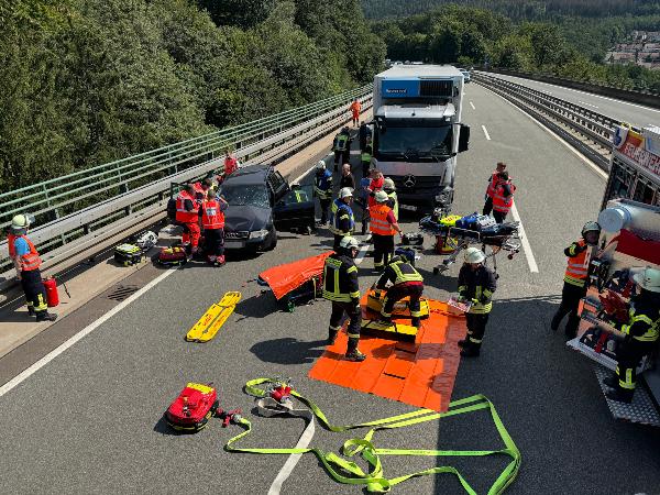 | Eingesetzte Fahrzeuge: | Rettungshubschrauber Christoph 16 (), Rettungswagen (), Polizei (), Autobahnmeisterei (), TLF 16/25 (1-23), LF 8/12 (1-42), RW (1-52), LF KatS (2-44), HLF 10 (2-45), MTW (3-18), TLF 3000 (3-22), HLF 20 (3-46) |